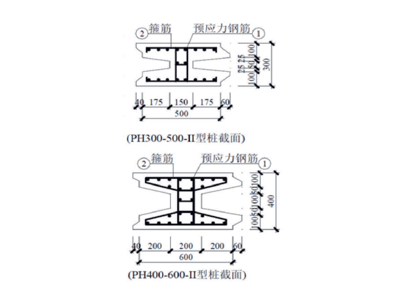 預(yù)應(yīng)力混凝土管樁生產(chǎn)工藝成熟,可以在工廠進(jìn)行大批量的生產(chǎn),目前在工程中應(yīng)用最為廣泛。由于采用預(yù)應(yīng)力鋼棒作為縱向受力主筋,冷拔低碳鋼絲作為螺旋筋,導(dǎo)致預(yù)應(yīng)力混凝土管樁水平承載力低和變形延性差。而鋼絞線具有較高的抗拉強(qiáng)度和較好的變形延性,以鋼絞線代替?zhèn)鹘y(tǒng)的預(yù)應(yīng)力鋼棒作為主筋,研發(fā)了先張法預(yù)應(yīng)力混凝士H型護(hù)岸樁,進(jìn)行了不同規(guī)格H型護(hù)岸樁試件抗彎和抗剪承載力試驗,測得的極限抗彎和抗剪承載力要遠(yuǎn)大于等厚度管樁,目具有更好的變形延性。